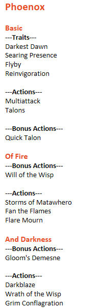 | Summon Zodiac 4th-level | 1.▲ The spirit's star motes are now intangible. 2.▲ Creatures can now be damaged by more than one mote with Solar Decan. 3.▲ Lunar Bounds no longer has a saving throw and its effect is guaranteed. 4.▲ Planetary Rulership's imbuement and advantage lasts until the next hit, and it deals +3d6 force damage instead of +1d10. 5.🛠 Place Star Mote's wording changed from "It can place up to 5 motes" to "Up to 5 motes can exist simultaneously". | 1. Could've previously been interpreted that the star motes are physical. Making them intangible makes their spaces free to be occupied, allowing for maneuverability. 2. 2d8 damage is less damage than a full round of attacks from Multiattack, making this action frequently the lesser option. Allowing multiple motes to damage a single creature encourages smart placement to maximize damage. 3. This action takes, at minimum, 2 turns to set up. It'd feel bad to struggle with concentration checks, taking damage, and strategic mote placing if the enemy passed the saving throw DC and fully resisted the effect. 4. Like with the above, Planetary Rulership requires 3 turns to set up. All for the possibility of a missed attack even through advantage, and a paltry +1d10 damage. Buffing the damage and granting advantage until the first hit removes how underwhelming it was. 5. Done to prevent misinterpretation of thinking the spirit can only place 5 motes per casting of the spell. |